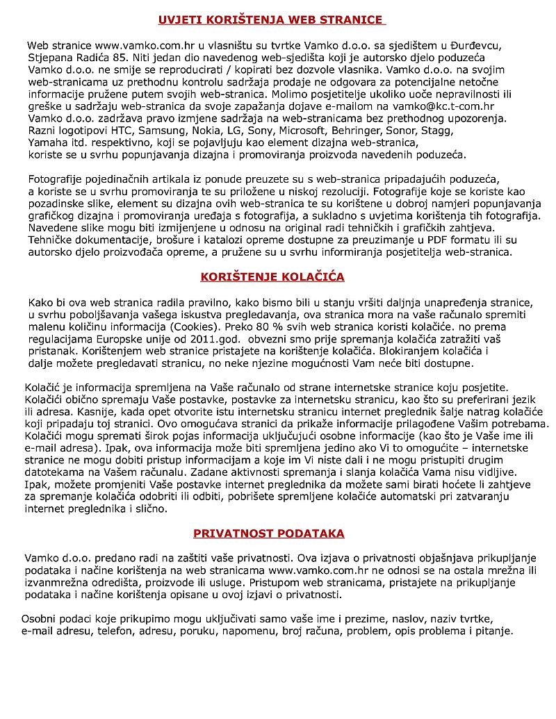 Uvjeti korištenja web stranice